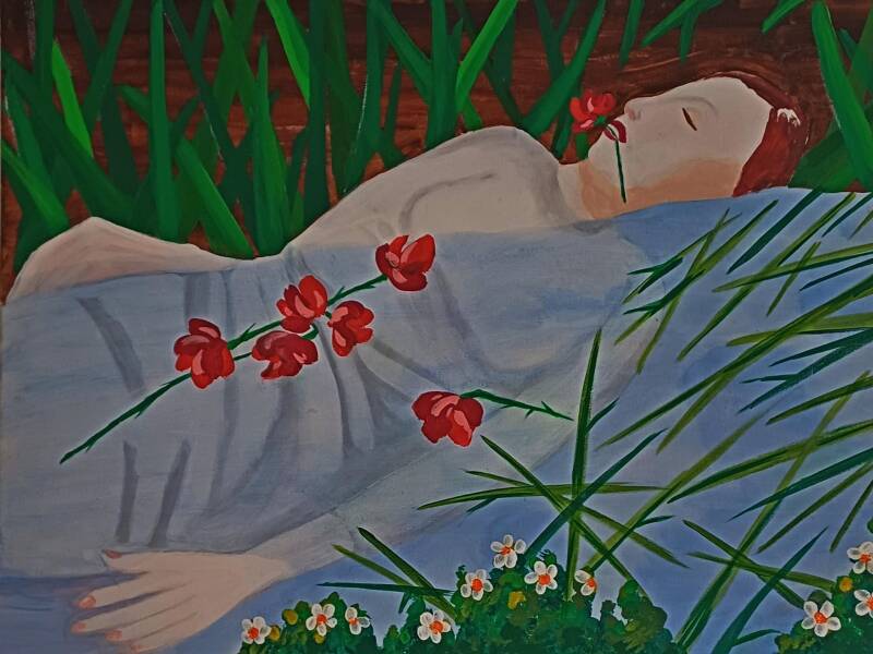 Kunstenaars die ik graag zie zijn Egon Schiele en Mucha. Ik schilder graag intuïtief, maar leer veel door goed te kijken. Kijken is het halve werk. Ik schuw het precieze schilderwerk niet.